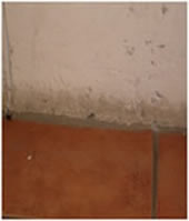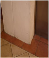 Dirty edges from constant mopping without regular scrubbing of tile grout and paint.